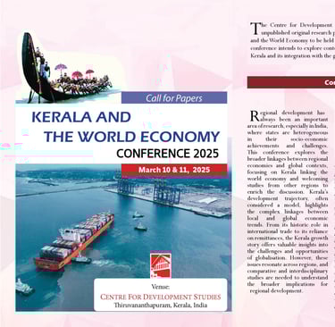 We are currently working on a paper for the Conference on Kerala and The World Economy organised by the Centre for Development Studies, scheduled to be held on the 10th and 11th of March, 2025.